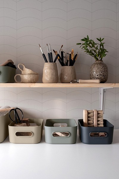 SmartStore™ Comfort helps to keep your everyday household items organized. The beautiful containers come in trendy, earthy colors, and are designed to work both in cabinets and drawers, as well as on shelves and counter tops. SmartStore™ Comfort S is perfect for small toiletries and bathroom items, laundry room supplies, small storage in the entry and hallway, as well as in the garden shed or garage. Made in Finland, of recycled plastic waste that has been collected from consumers. 10 years guarantee.